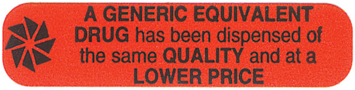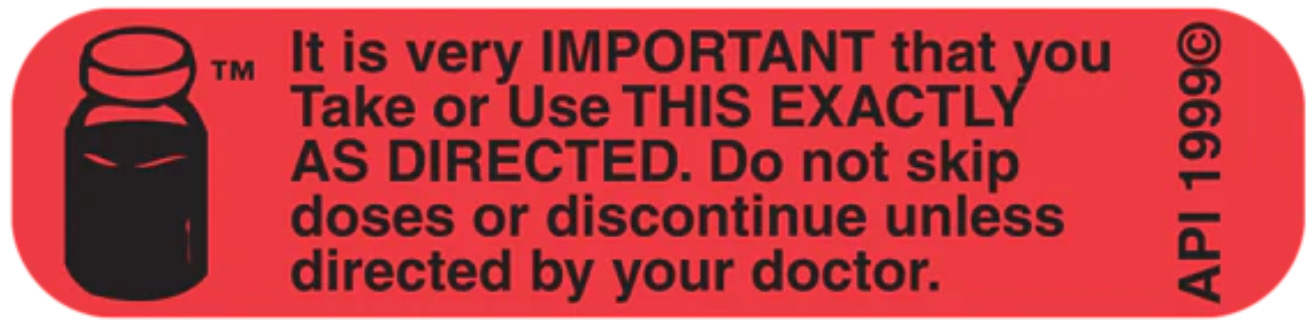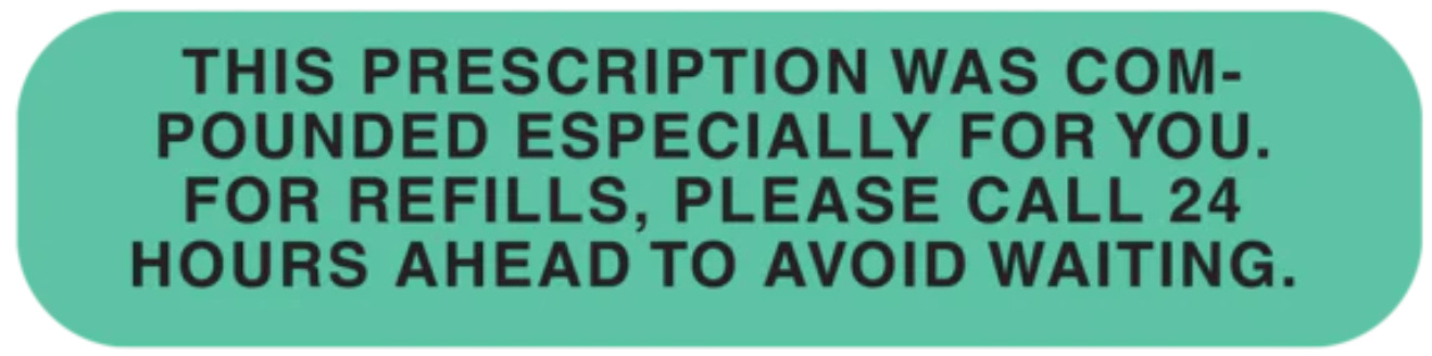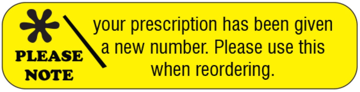 It turns out that there’s a subset of auxiliary labels whose messaging appears to be intended for hospital staffers, not for pharmacy customers — “Dosage Changed, Refer to Chart,” for example, or “Patient Is Allergic to Penicillin,” or “Infuse Entire Contents of Bag.” While it was tempting to include these labels, they’re not typically part of the retail pharmacy experience, so I didn’t include them. (Frankly, it seems to me that these hospital stickers should be a whole separate sales category, but online vendors tend to intermix them with the pharmacy stickers, all under the “Auxiliary Labels” heading.)