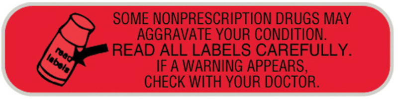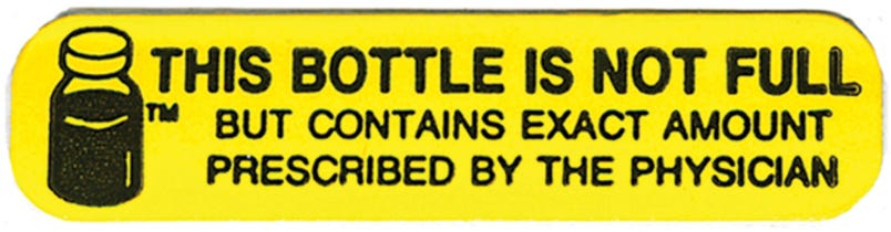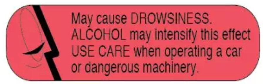 Auxiliary labels have a fairly consistent look: They usually measure an inch and a half wide by three-eighths of an inch high, come in a familiar ranges of reds, blues, yellows, oranges, and greens, and often include very simple illustrations. Although this fairly uniform formatting may provide a veneer of formal standardization, the reality is that the labels are not issued or approved by any industry group and are not subject to any state or federal regulation, so there is no “official” version of any auxiliary sticker. Depending on the vendor, the same basic message may appear with slightly different wording, on a different-colored background, or accompanied by a different (or no) illustration. Here, for example, are some of the options — but by no means all of them — for the common “May Cause Drowsiness” message: