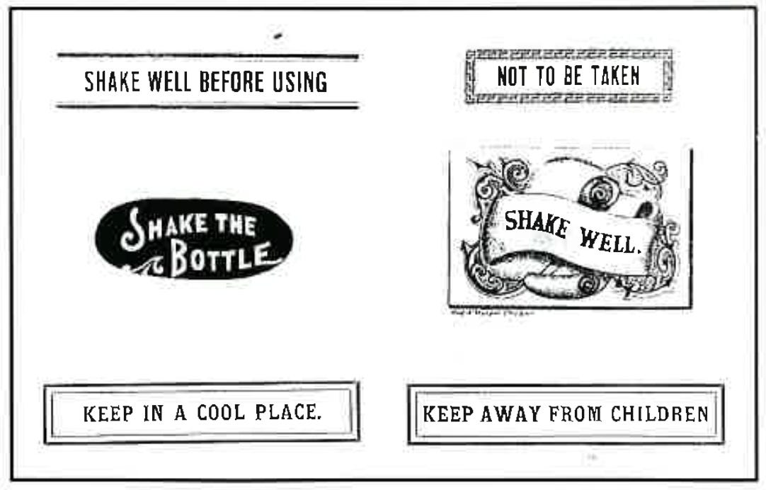 Auxiliary labels also became popular during the second half of the 19th century. … [One] widely used auxiliary label read, “To Be Shaken Well Before Taken.” Alfred B. Taylor of Philadelphia reported that he was faced by questions from patients asking whether they should shake the bottle or shake themselves before taking the medicine, so Taylor labeled his prescriptions, “Shake the Vial Well Before Using.”