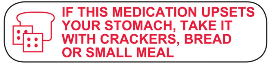 The sticker on my pill bottle is part of a larger family of brightly colored labels that we’ve all seen on our prescription medications. Usually they’re amplifying a doctor’s instructions (“Take with Food”) or warning of possible side effects (“May Cause Drowsiness”). I’d never devoted much thought to them before, but this latest one got me thinking: Who makes and sells these little stickers? How many different messages do they carry? Is someone credited with “inventing” them, or did they emerge sort of organically?