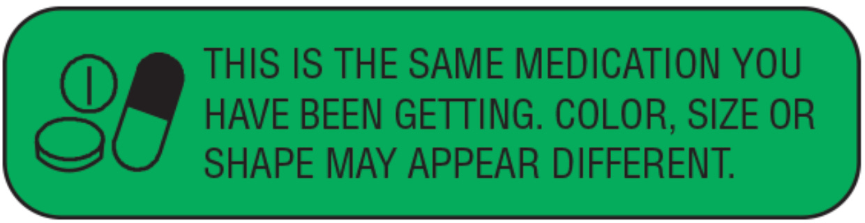 That’s when I noticed a little green sticker on the pill bottle. As you can see in the photo shown above, it reads, “This is the same medication you have been getting. Color, size or shape may appear different.” I felt reassured, and was also happy that my pharmacist had been thoughtful enough to anticipate my concern.