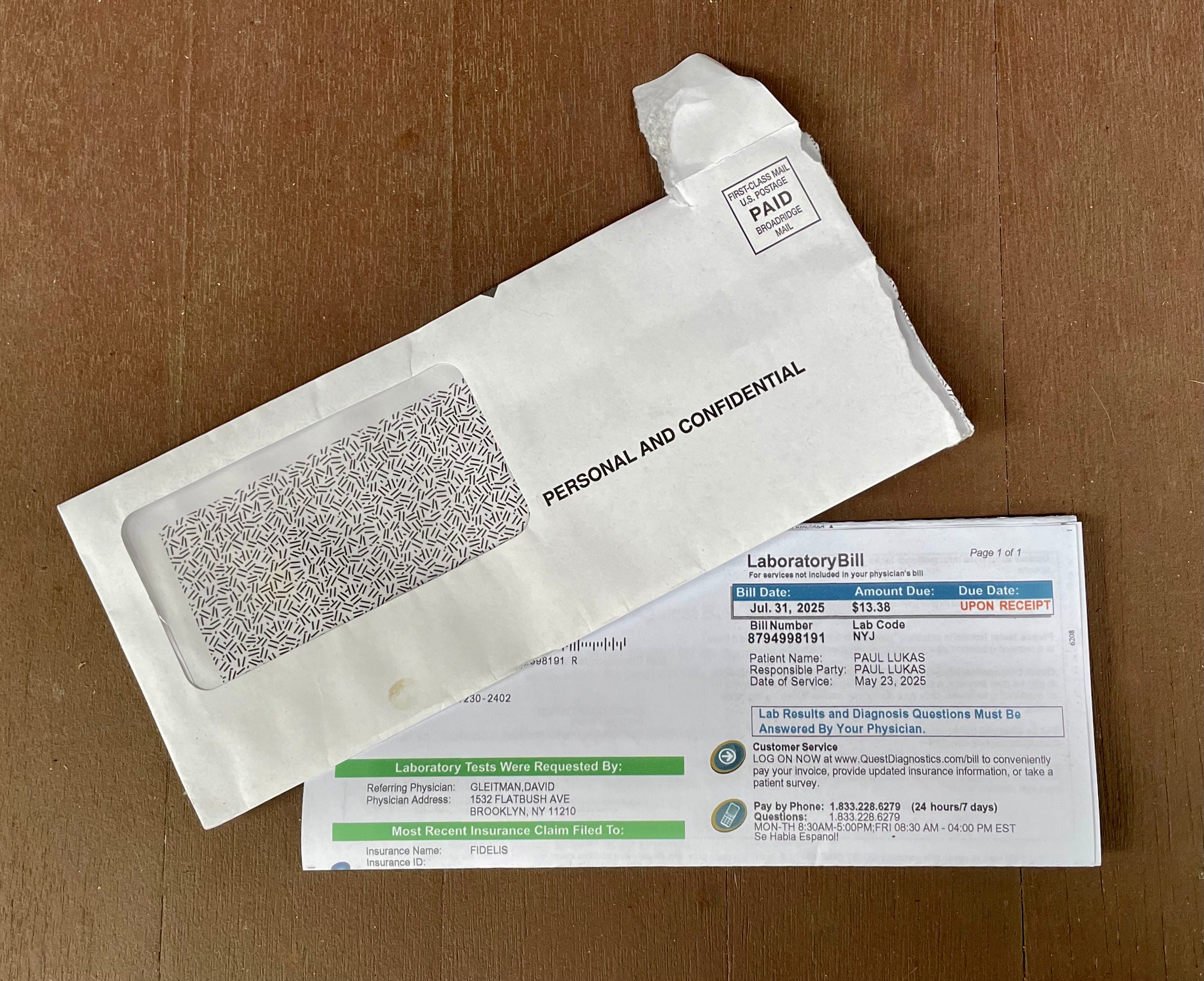A few days later, I received a medical lab bill in the mail. It came in an envelope with another security pattern: