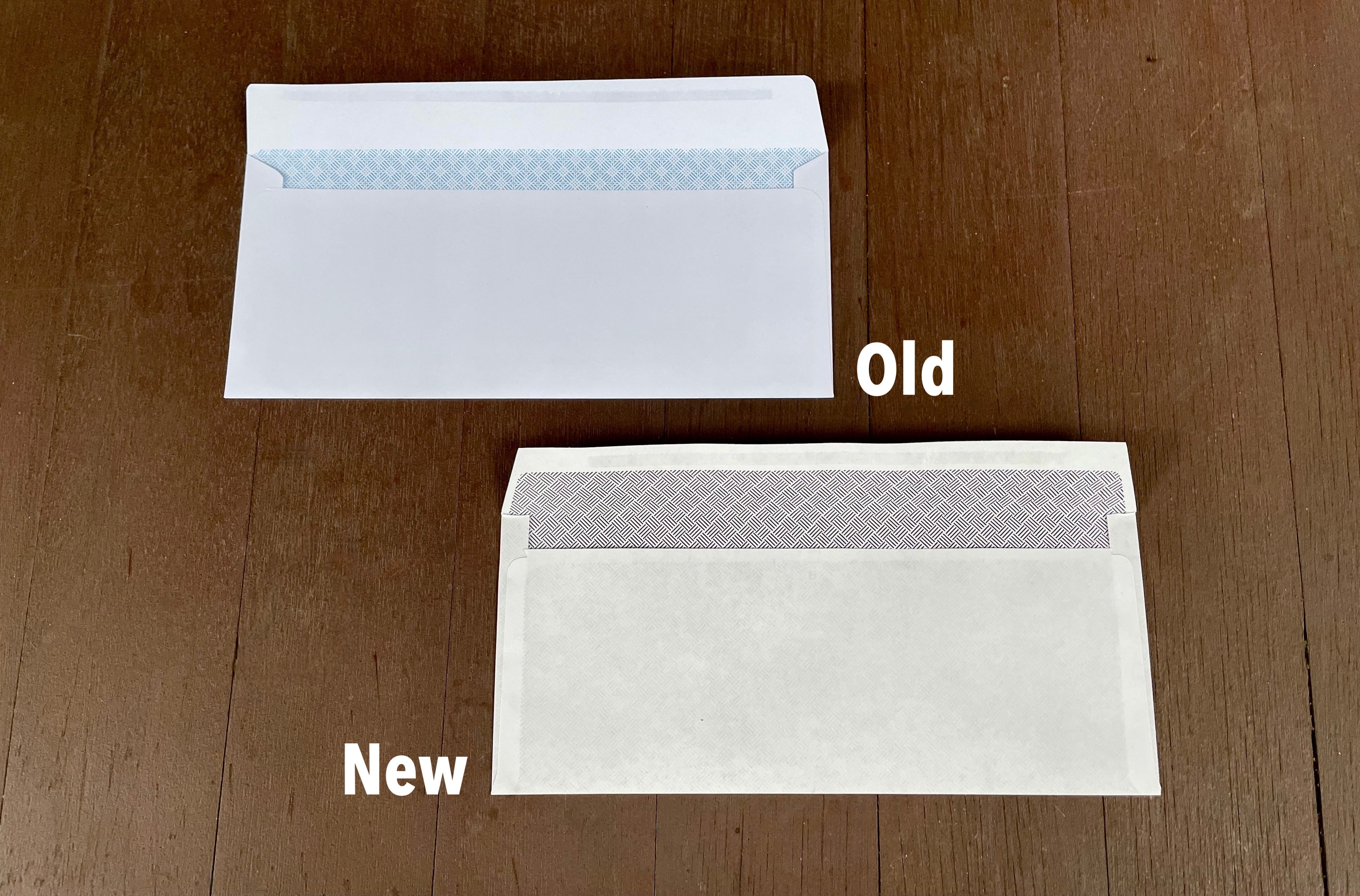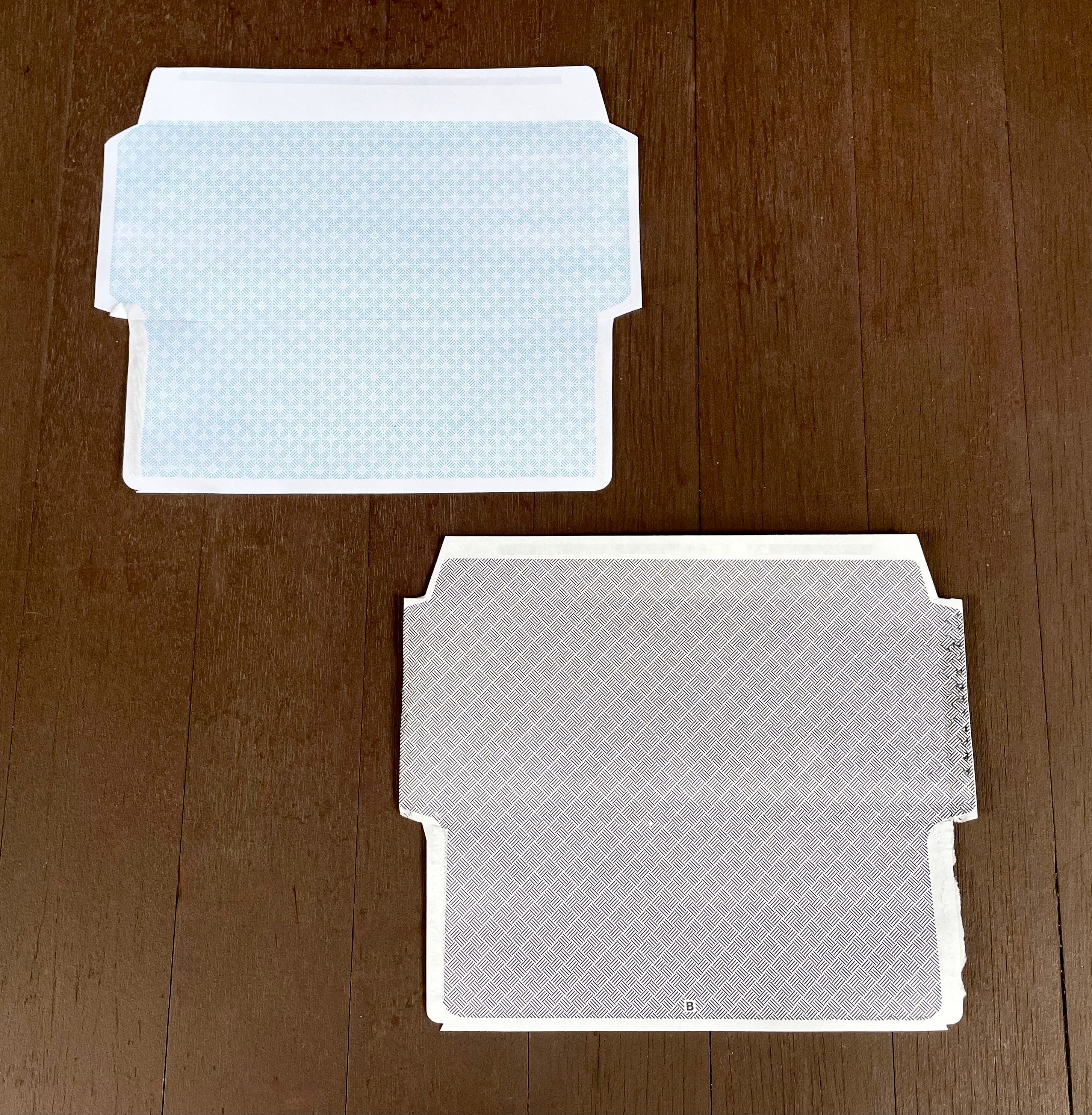 I noticed the other day that I was running low on envelopes (yes, I still mail letters and other envelope-able items), so I went around the corner to the dollar store and got a new box of them. As you can see above, the security pattern on the new envelopes extends up onto the flap, while the pattern on the old ones does not. But the more interesting thing, at least to me, is that the patterns themselves are distinct.