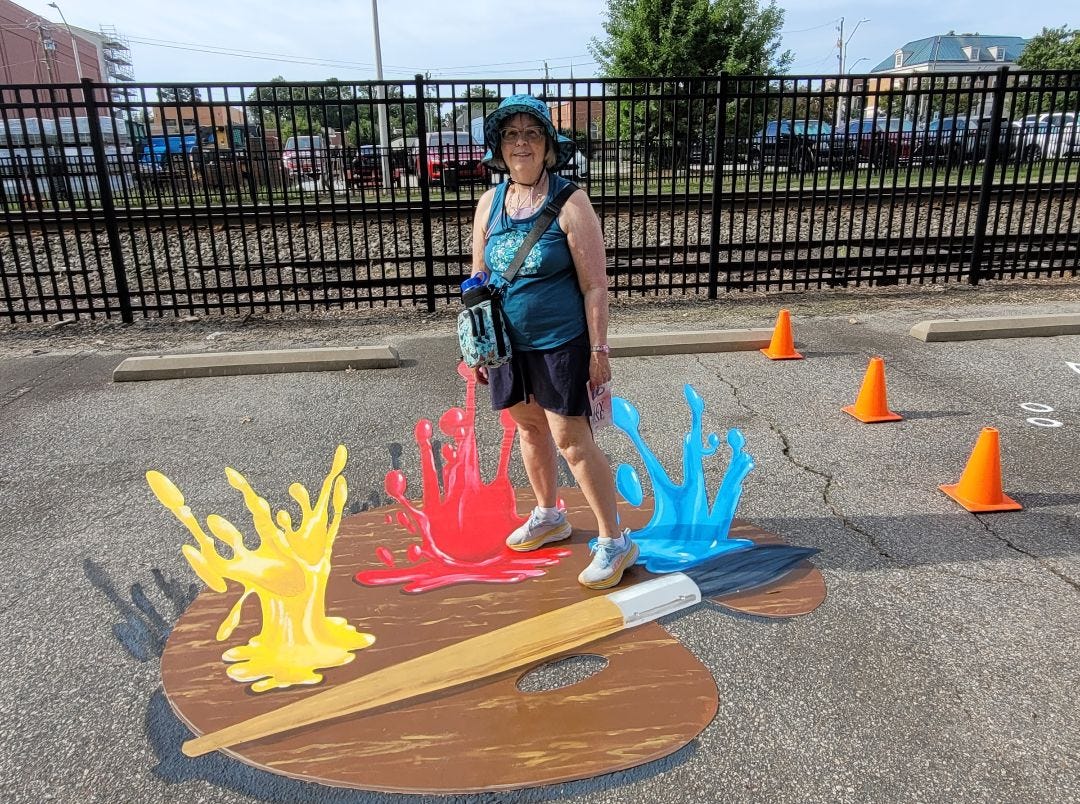 If you like trompe l’oeil art, you’ll enjoy this photo of reader Elena Elms standing on what is, despite appearances, a flat work of art:
