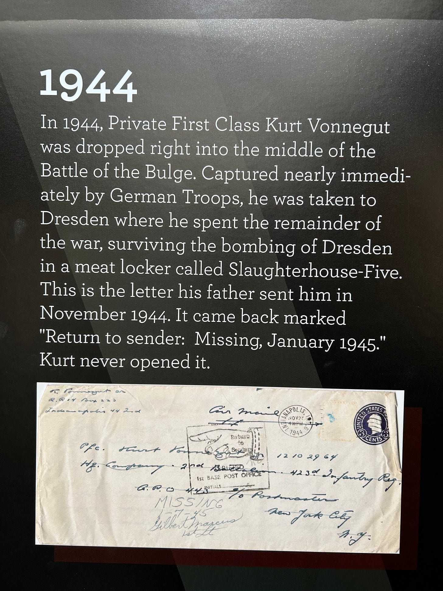 Remember my post from last year about “Return to Sender” symbols? Reader Tony McCosham spotted a good one at the Kurt Vonnegut Museum and Library in Indianapolis:
