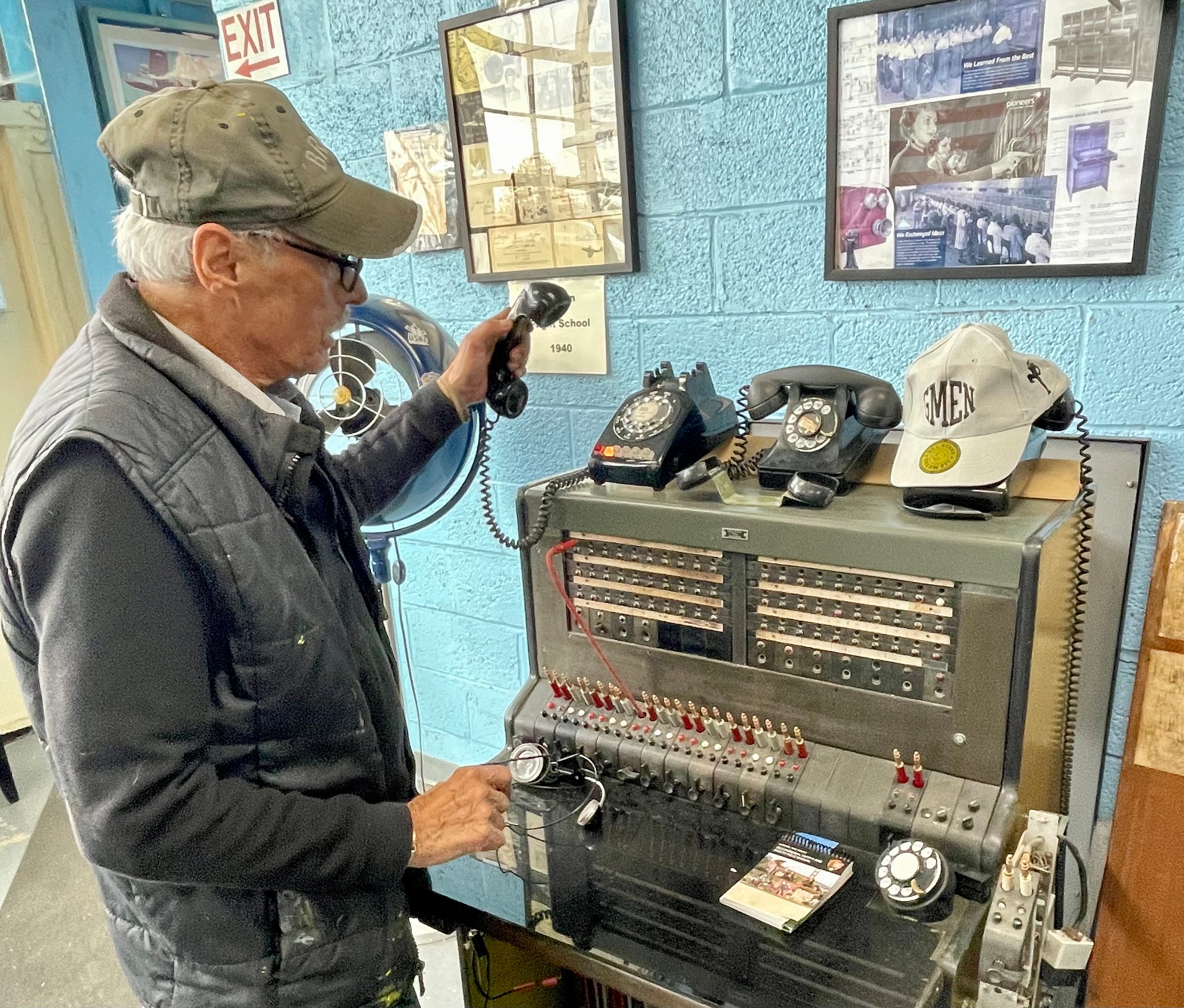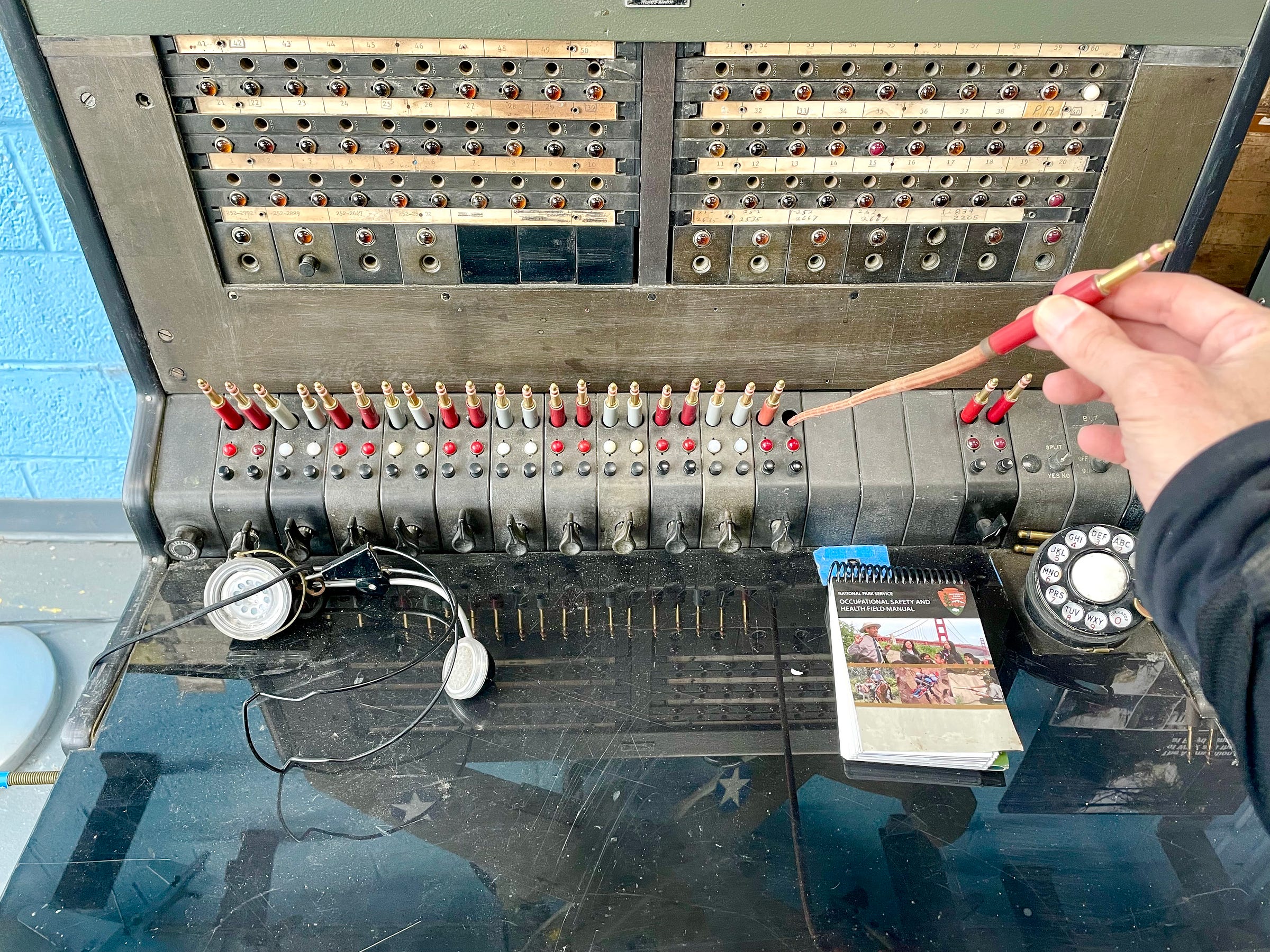 It started a few weeks ago, when my friend Dave (he’s the one who took all those photos of Brooklyn tire shops) invited me to bike with him out to Floyd Bennett Field, a decommissioned airfield on the outskirts of Brooklyn. One of the old hangars houses an aviation museum, which we spent a bit of time checking out (you can see some photos I took here). But before you get to the hangar’s main area, you have to pass through an anteroom that features an old-fashioned telephone switchboard, full of cables, plugs, sockets, and the like. The photo above shows a museum volunteer named Victor demonstrating how the switchboard works.