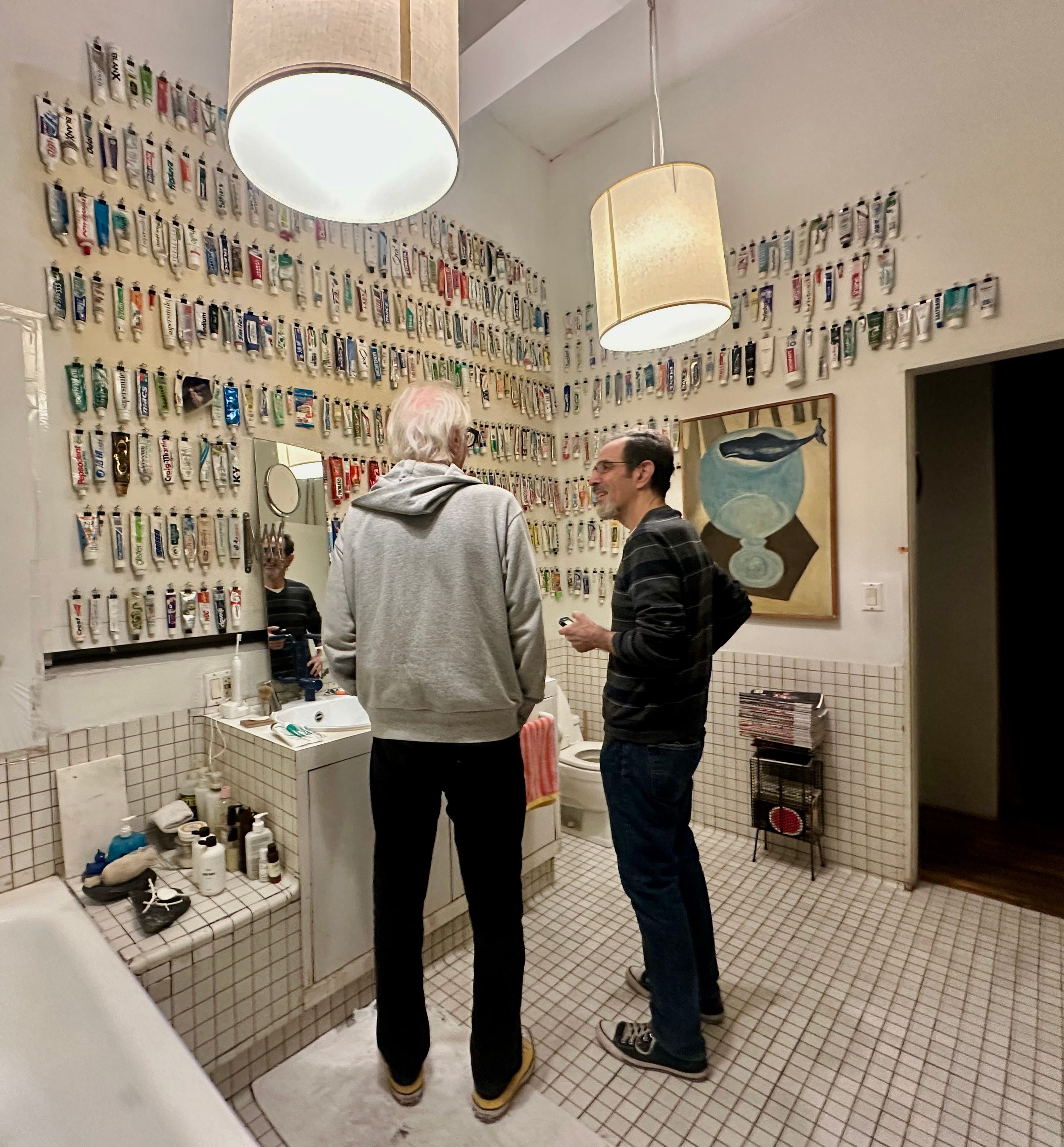 Along the way, I learned that Viemeister has a large collection — maybe even the world’s largest — of toothpaste tubes, which he displays in the bathroom of his Manhattan apartment. Naturally, I wanted to see, so I recently arranged to pay him a visit.