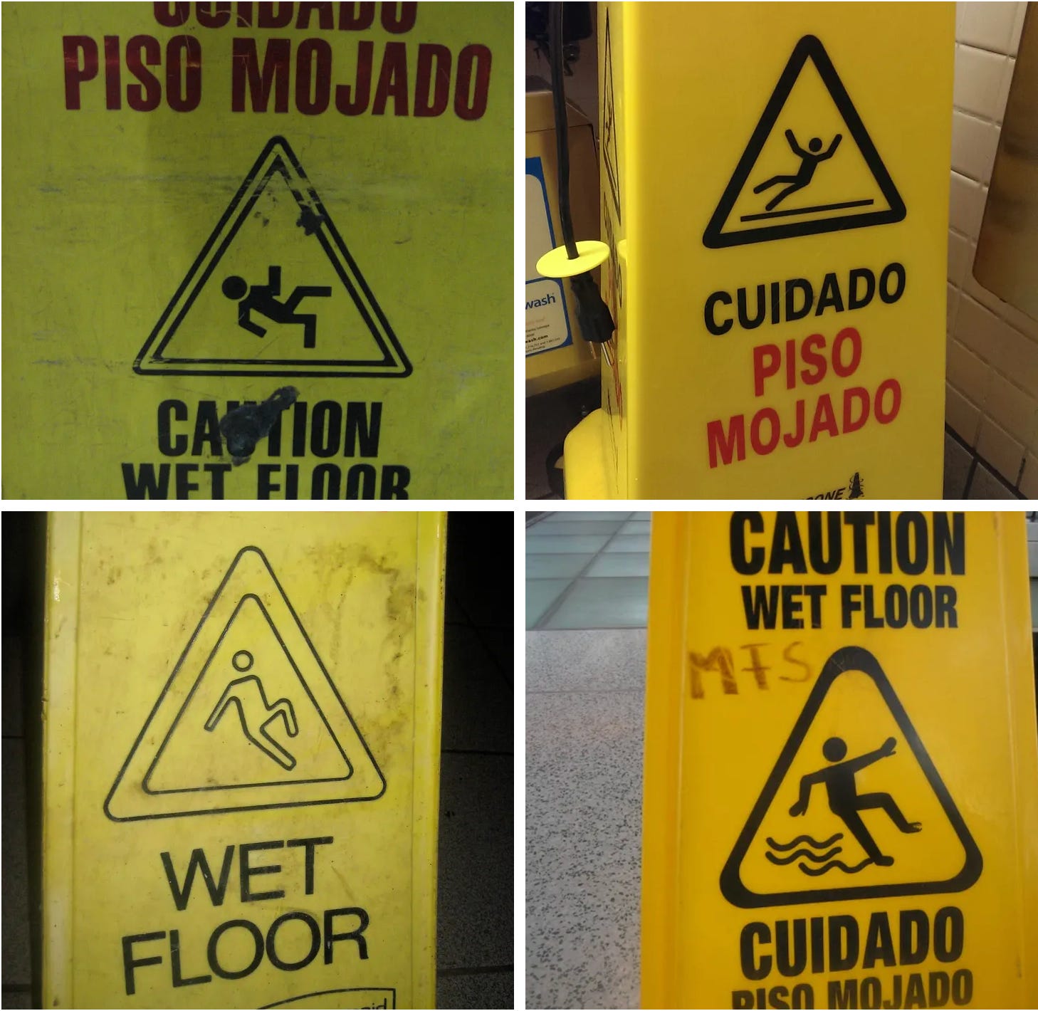 And that’s how I met Rob Walker, who quickly became one of my favorite people and best friends. Like me, he’s spent most of his career as a freelance writer with lots of extracurricular creative projects (you can see a good rundown here). We also share a love of object-based storytelling, a sort of skeptical fascination with consumer culture, and, most of all, a strong interest in things that most other people take for granted. As a small but brilliant example of that, Rob likes to document all the various poses of the stick figure on “Caution: Wet Floor” signs (or as Rob calls him, “Cuidado Man”), a brilliant project that I wish I’d thought of myself: