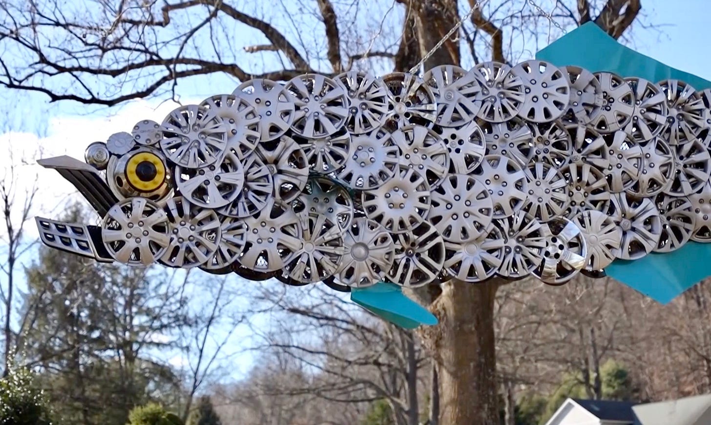 There’s a guy in Baltimore who’s embarked on an unusual project: He’s collected hundreds of discarded hubcaps that he found on the side of the road (talk about a specific collecting category!) and turned them into super-cool sculptures, like the fish shown above. This link has a good article and a fun video. (From Jason Hillyer)