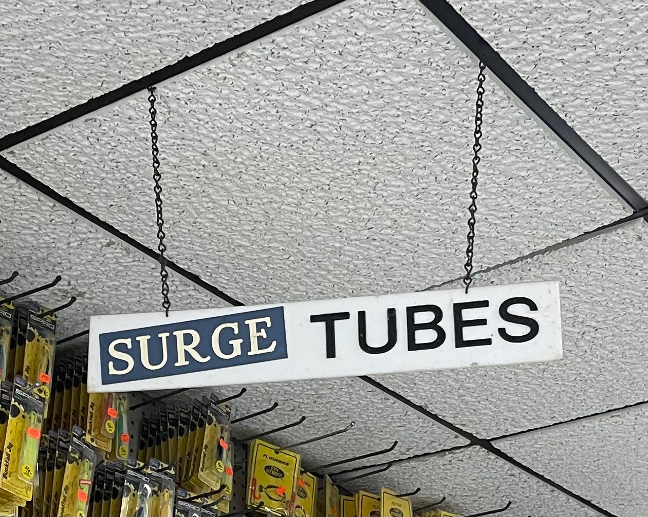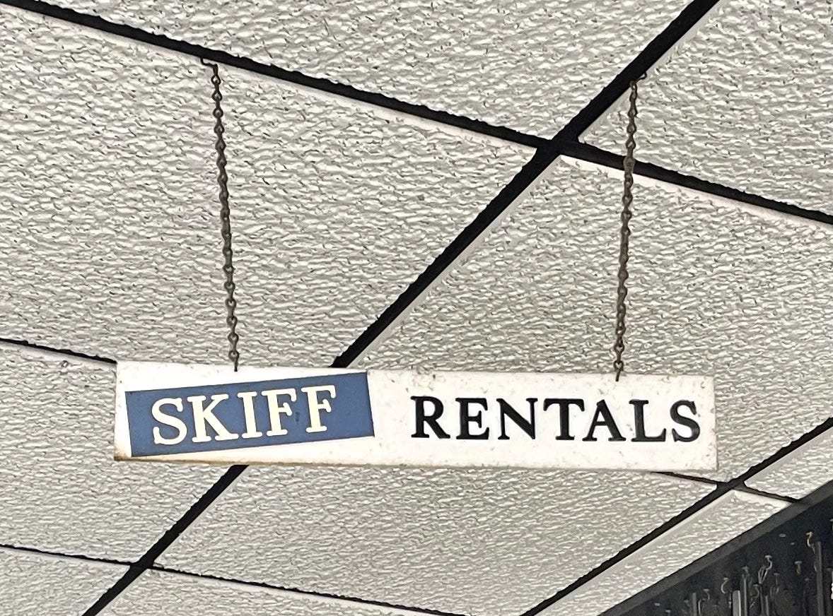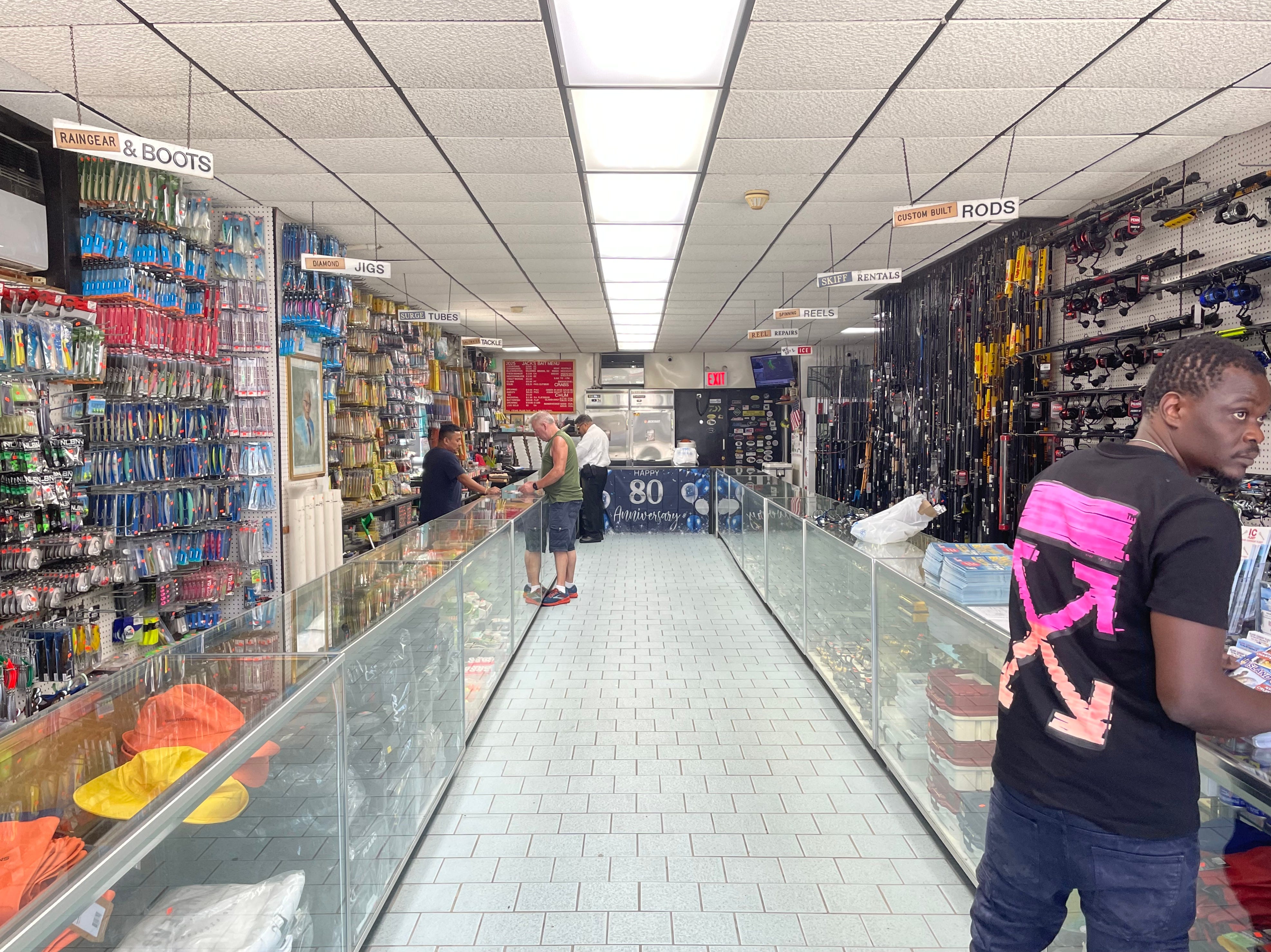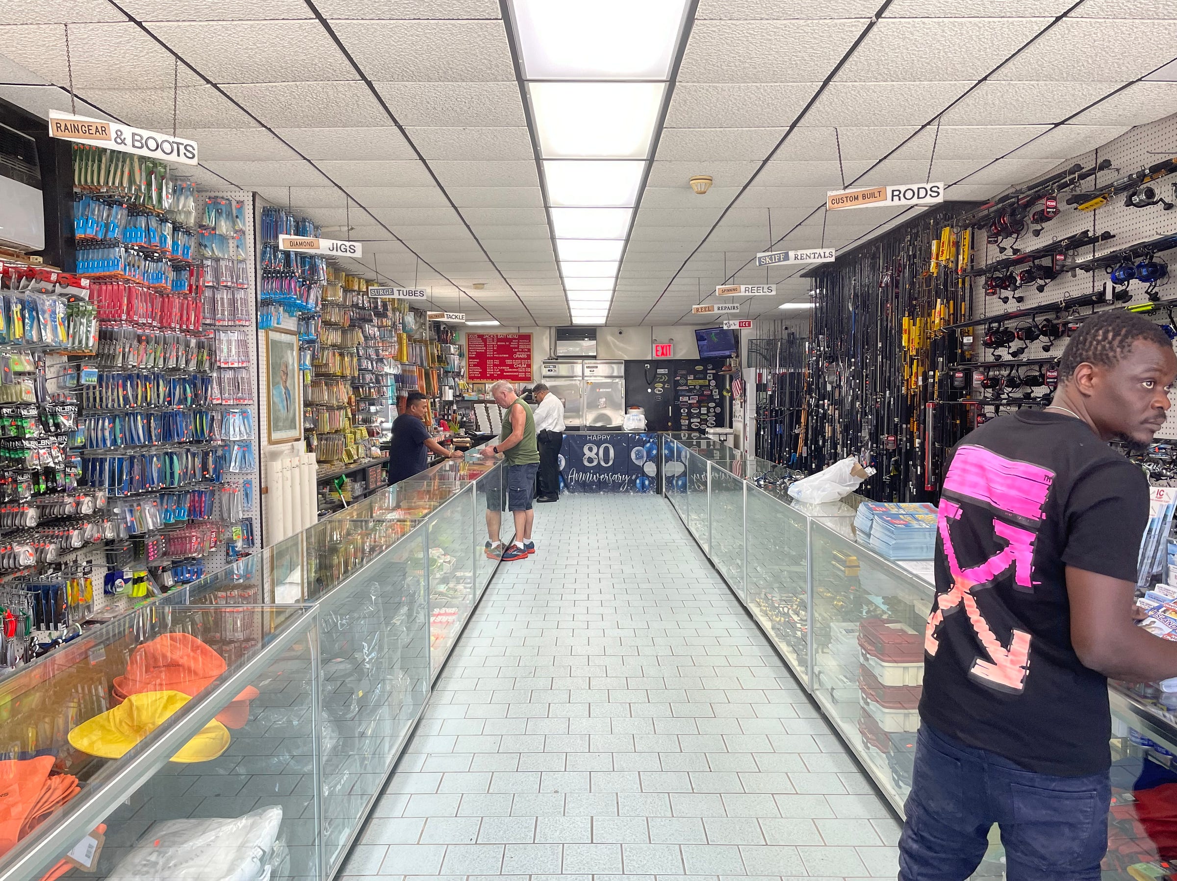 I stopped in the other day at Jack’s Bait & Tackle, an 80-year-old shop in the Bronx. As you can see in the photo above, they have a series of signs hanging from the ceiling. What I found interesting about these signs, which look to me like they’re from the 1960s or ’70s, is that they’re rendered in an amusing “sign within a sign” format. Check this out:
