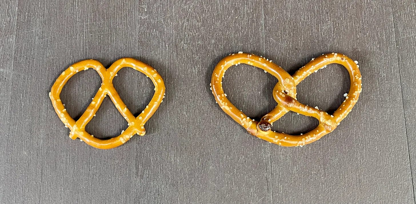 But if you look at the pretzels shown at the top of this article, you’ll see that while the their left and right sides loop around and meet in the center, they do not actually twist. Instead, they look like this: