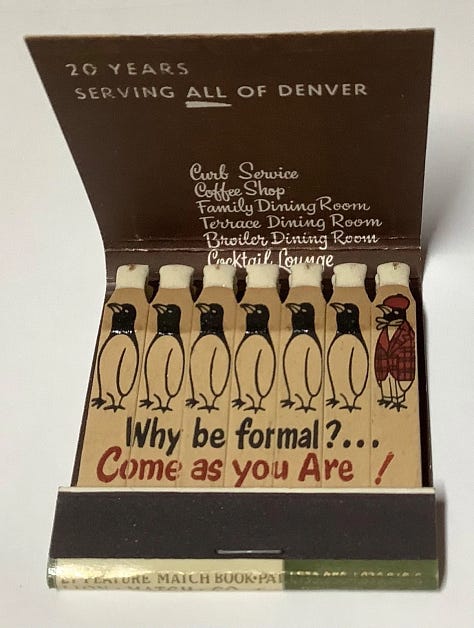 They like them so much, in fact, that an increasing number of restaurants, bars, and hotels, most of which long ago stopped providing complimentary matchbooks emblazoned with their names and logos, have begun offering them again. That in turn has led to the rise of websites like Matchbooktraveler, which features lists of business all over the country that offer free matchbooks. Here, for example, is their list of such establishments in Los Angeles. (Matchbooktraveler also has an active Facebook page.)