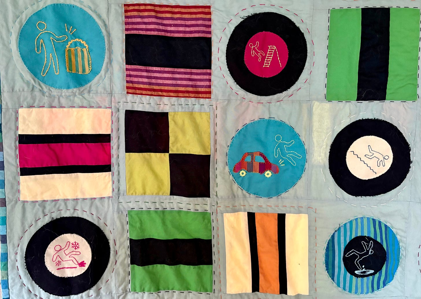 Stick Figures in Peril — on a Hand-Embroidered Quilt!