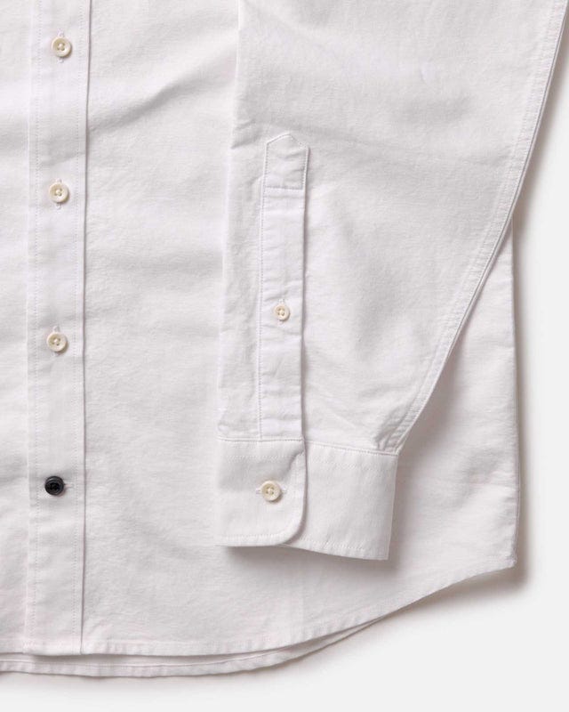 As I quickly discovered on Taylor Stitch’s website, the bottom button on some of their shirts (but not all of them) is a dark navy blue, even when the rest of the buttons are white. Here are some examples: