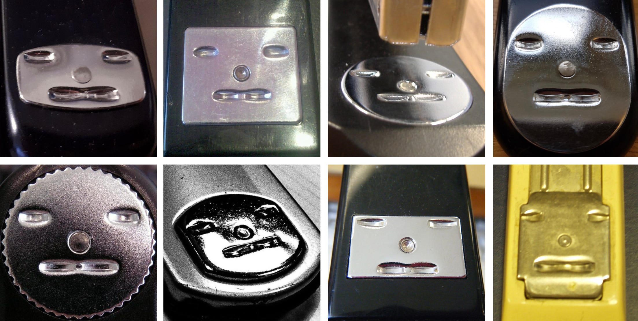 That plate, which bends the legs of the staple into proper paper-fastening position, is called the anvil — a tremendously satisfying name that makes stapling feel akin to blacksmithery. Anvils come in a surprising variety of shapes, but the one thing they tend to have in common is that they’re ripe subjects for pareidolia, which is a fancy way of saying they look like faces.