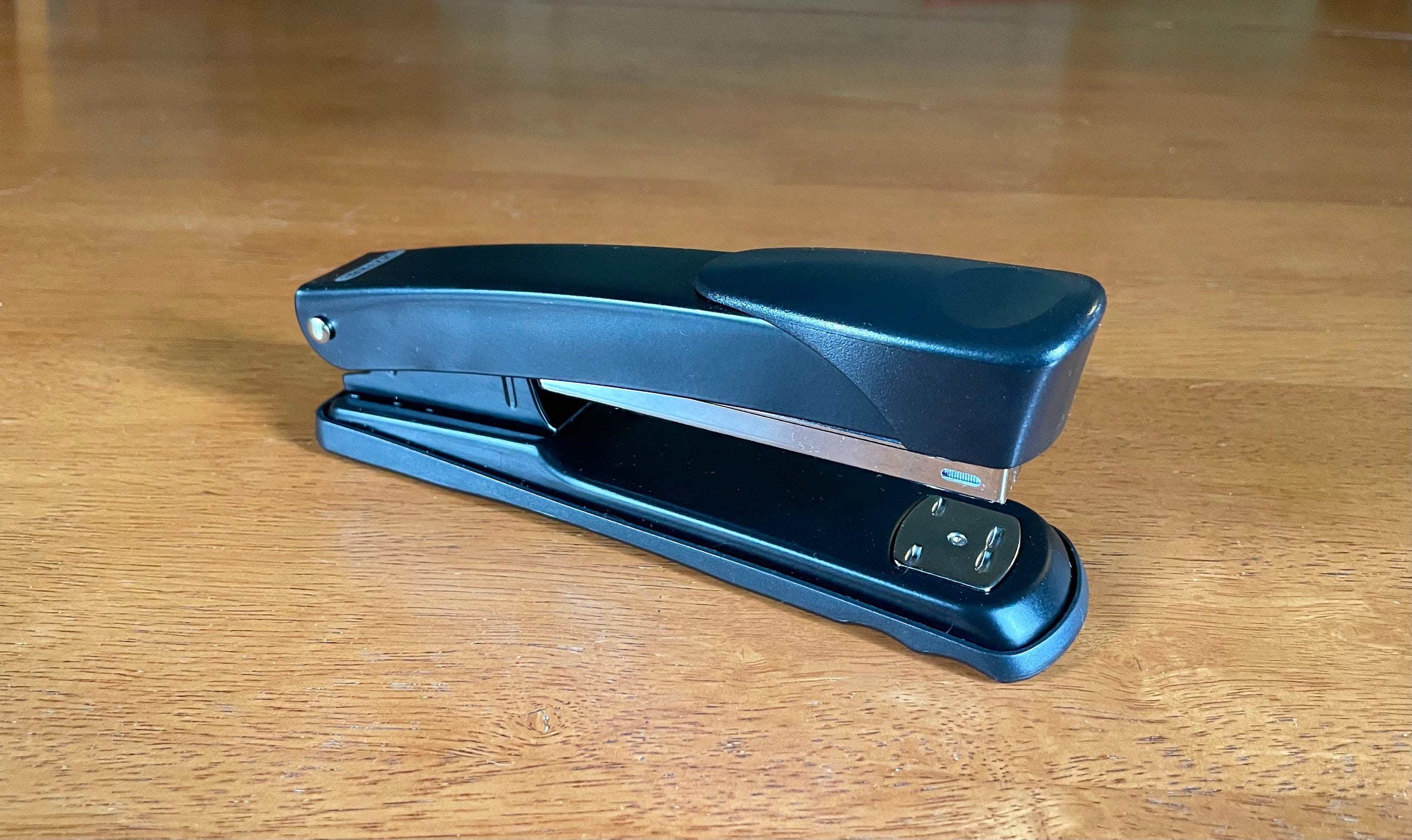 The first stapler was patented in 1877. But the modern version, like the one shown above, was pioneered in 1941. We’ve all used this type of device countless times, and you might think there’s nothing new to learn about it. But today I want to focus on one specific detail: the metal plate near the front of the stapler’s base.